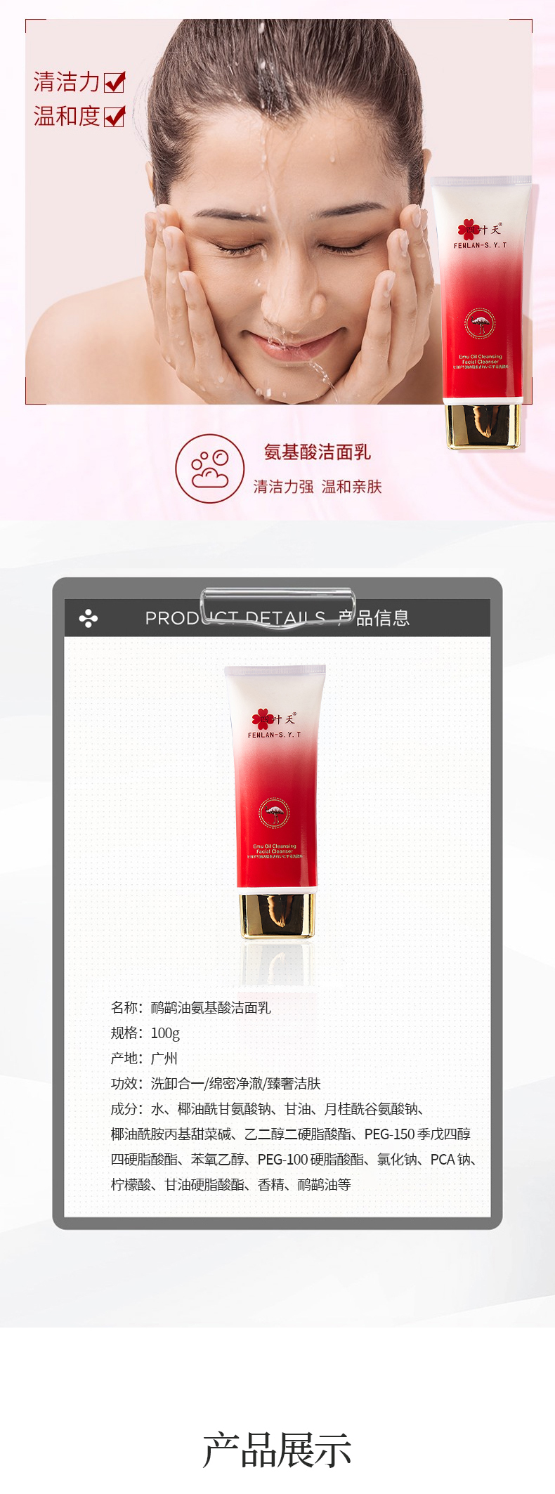 四叶天鸸鹋油净肌清颜洁面乳